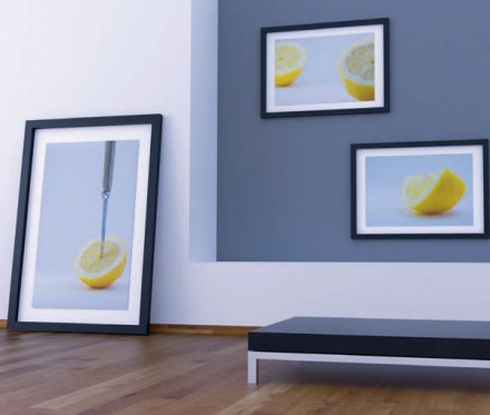 Efektowną dekoracją ścian w modnych stylizacjach jest powtórzenie danego motywu – np. w formie oprawionych grafik. Cytryna to dobry model fotografii czy rysunku warty wykorzystania. Jej kolor, kształt (działający podświadomie na zmysły węchu i smaku) przyciągnie uwagę oraz ożywi każde wnętrze. Intensywny żółty świetnie gra z kolorami aktualnie tak bardzo popularnymi we wnętrzarstwie jak szary i czarny, ale komponuje się równie atrakcyjnie z głębokim granatem czy mocną butelkową zielenią. Wnętrza surowe, pozornie puste, jak hole, klatki schodowe czy gabinety dobrze będzie ożywić owocowym motywem, szczególnie na lato.