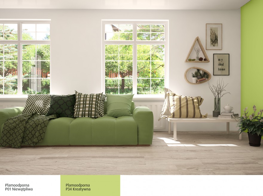 Modne kolory ścian to także zielenie. Wnoszą powiew wiosny do mieszkania, pomagają się zrelaksować i zregenerować. Kolor zielony, podobnie jak żółty, będzie tworzył zgrany duet z bielą. To jednak zachowawcze rozwiązanie. Jeśli pokusisz się o połączenie zieleni z fioletem, uzyskasz bardzo interesujący, przyjemny dla oka efekt. Zieleń z fioletem, szczególnie ciemnym, sprawi, że wnętrze będzie działało uspokajająco, ciesząc jednocześnie oczy swoim wyrafinowaniem.