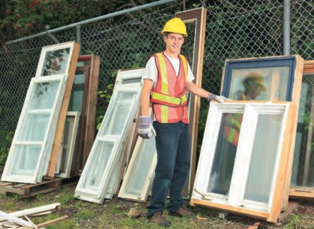 Stare, dekoracyjne szyby, zarówno okienne, jak i drzwiowe, można wykorzystać, o ile nie są popękane. Jeśli więc w rozbieranym domu jest piękny witraż, spróbujmy go wymontować i zachować dla siebie lub sprzedać. Szkło w postaci stłuczki jest również cennym surowcem, może być wielokrotnie poddawane recyklingowi. Surowiec ten jako mączka szklana wykorzystywany jest przy produkcji wielu materiałów budowlanych, a drobno mielone szkło stosuje się niekiedy jako materiał ścierny podczas piaskowania. Może pełnić też funkcje grysu do betonu czy ozdobnego kruszywa do wysypywania ścieżek. Sklejone żywicą cząsteczki szkła tworzą blaty i płyty znajdujące szerokie zastosowanie podczas budowy domu.